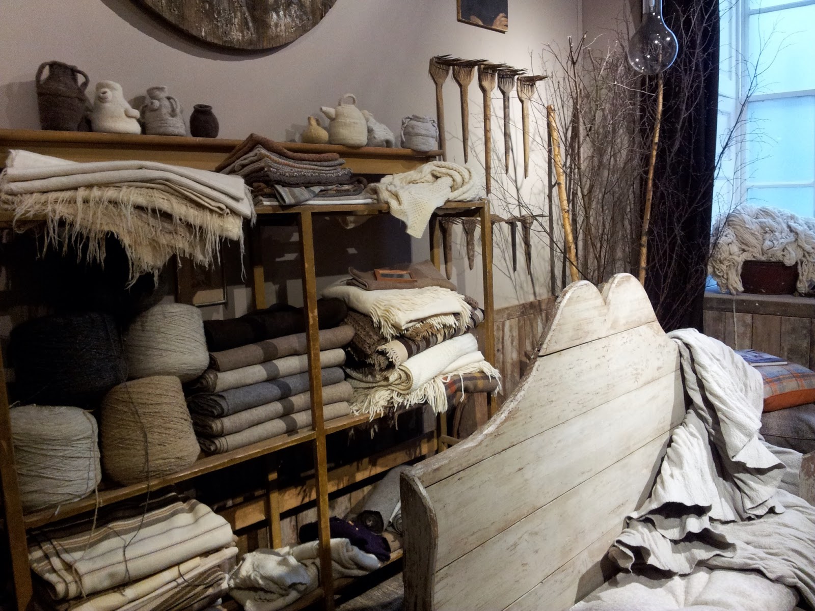The second side of the exhibition was made up of some fantastic individual designers and showcased weaving, spinning, tapestry, rugs, clothing, and the list just goes on! What struck me were the many uses for wool, basically anything, even stuffing bedding, and also the process it goes through before it even appears in my hands for me to be able to knit with. I'd love to see or have a go at spinning yarn one day.
