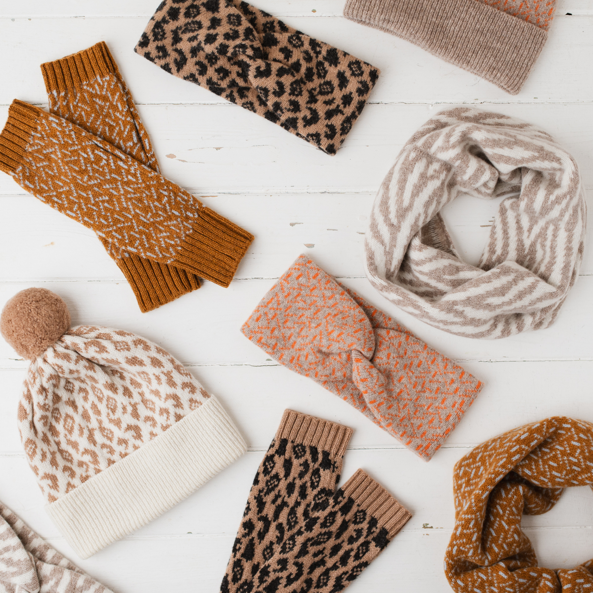 All Miss Knit Nat accessories are made in Great Britain, either by designer Natalie herself using hand powered knitting machines, or working with our manufacturer in Scotland. Our accessories are made using high quality British spun lambswool which has an exquisitely soft handle and works extremely well with our geometric patterns and blended colourways.